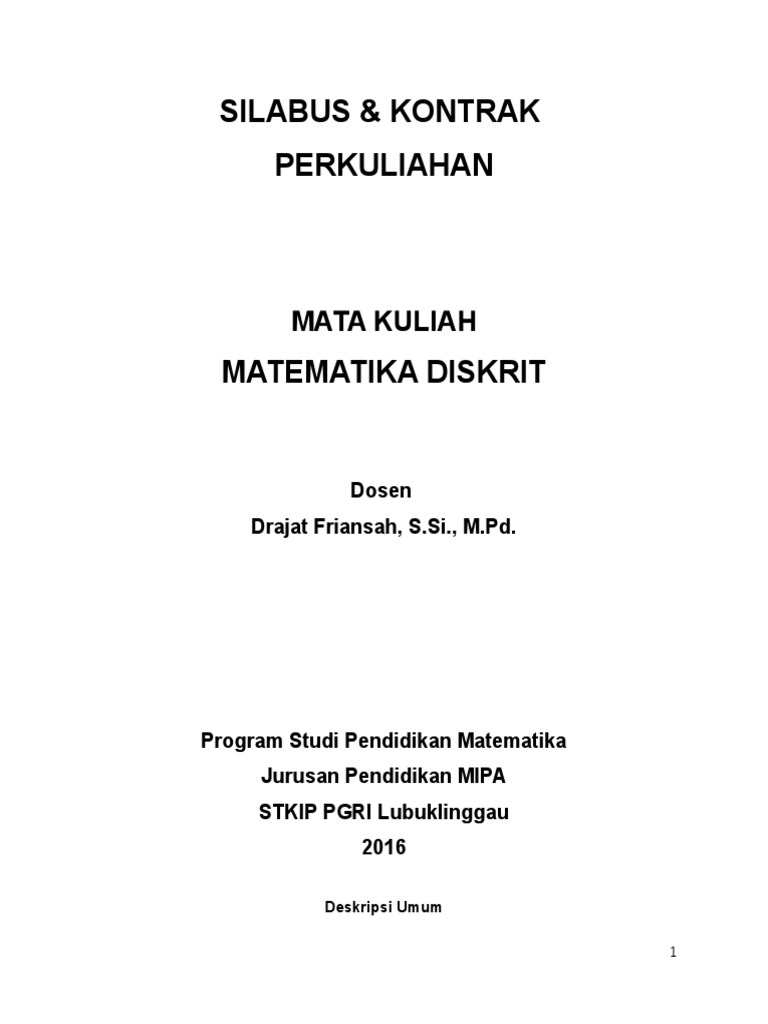 Materi Kuliah Matematika Diskrit Materi Kuliah