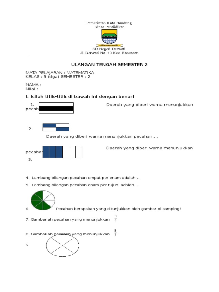 Soal Matematika Kelas 3 Semester 2 Pecahan Pdf