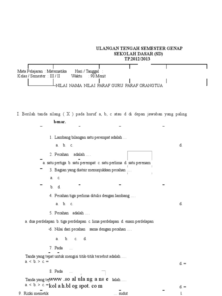 Download Soal Uts Genap Matematika Kelas 3 Rief Awa Blog