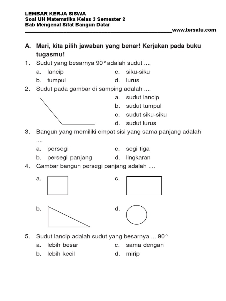 Contoh Latihan Soal Matematika Kelas 3 Sd Semester 2 Pilihan Ganda