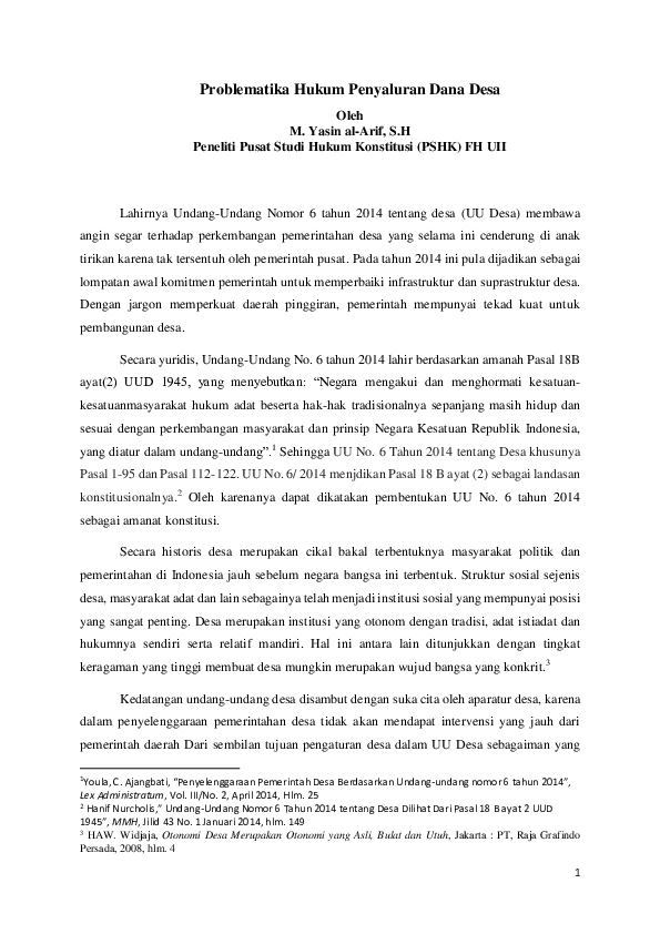 Problematika Hukum Penyaluran Dana Desa M Yasin Al Arif