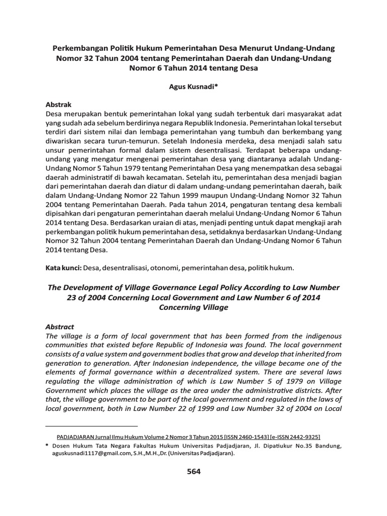 Pdf Implementasi Undang Undang No 6 Tahun 2014 Tentang Desa