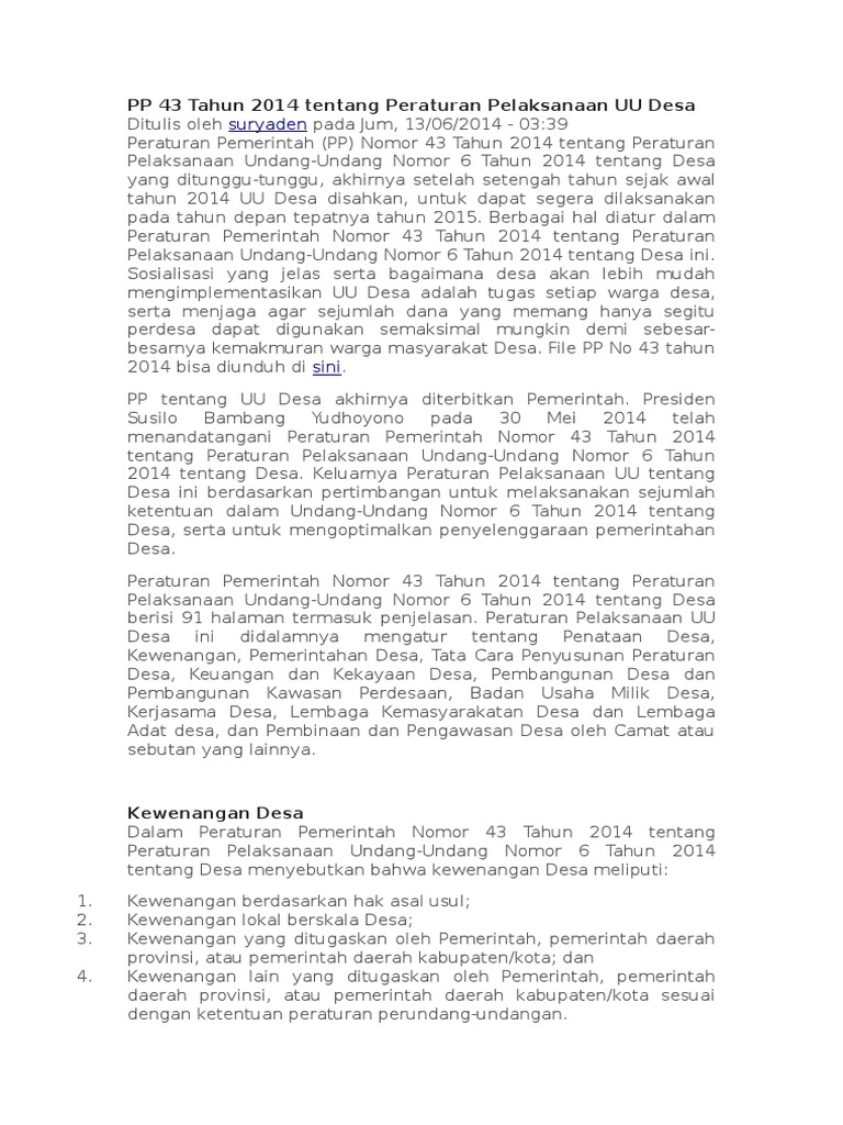 Latar belakang uu no6 tahun 2014 abahwa desa memiliki hak. Nomor 6 tahun 2014 tentang desa. Pemerintahan desa adalah penyelenggaraan urusan.