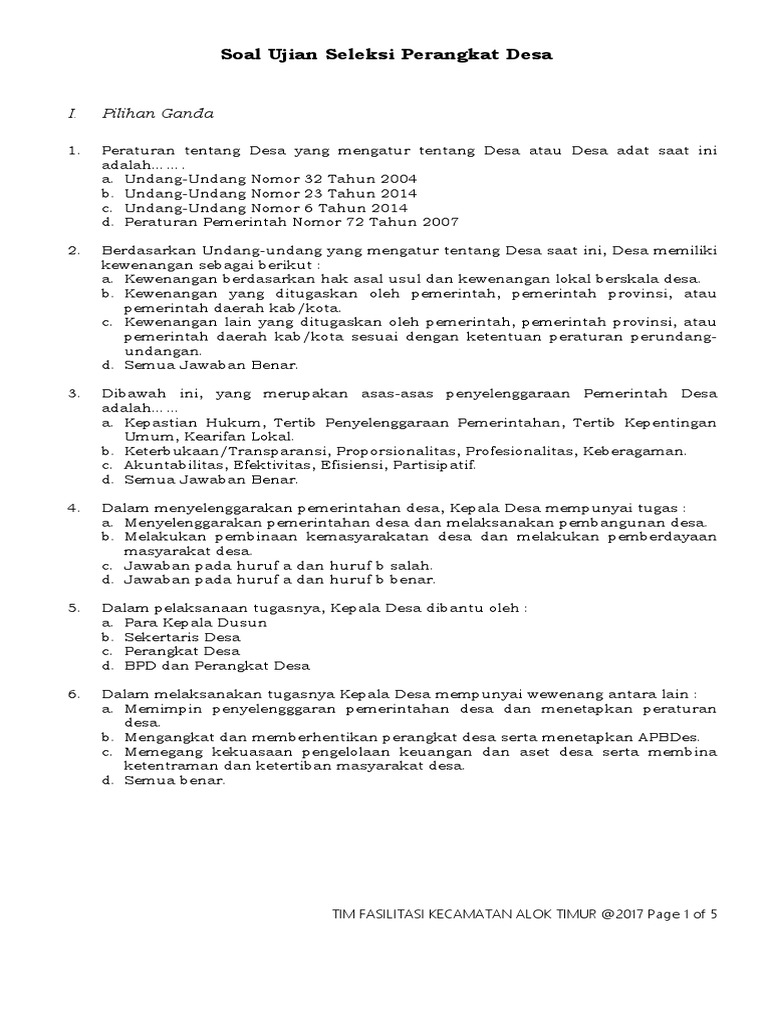 Soal Seleksi Perangkat Desa Fix