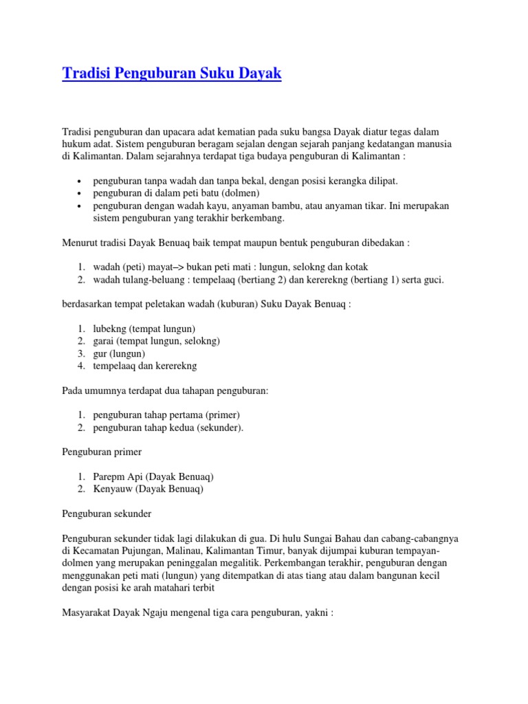 Pendidikan Tradisi Penguburan Suku Dayak