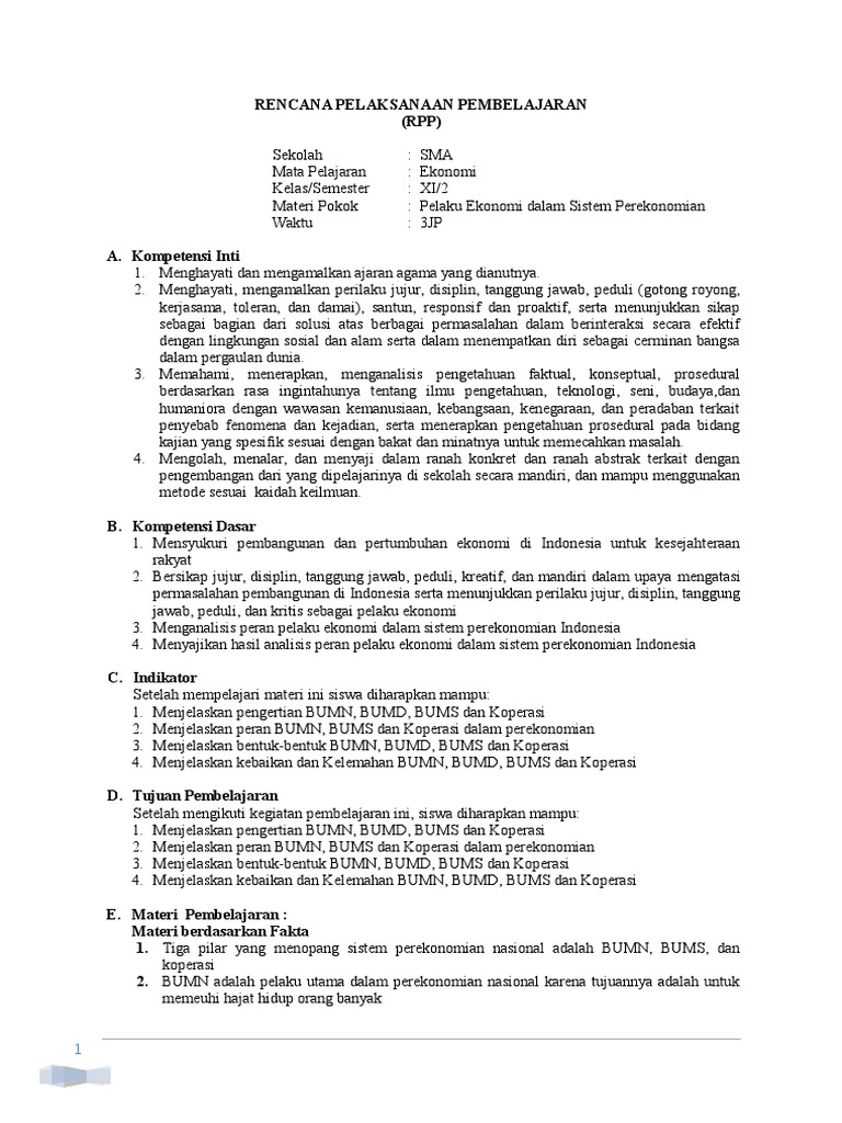 Rpp Ekonomi Kelas X Bab 10 K13 Badan Usaha