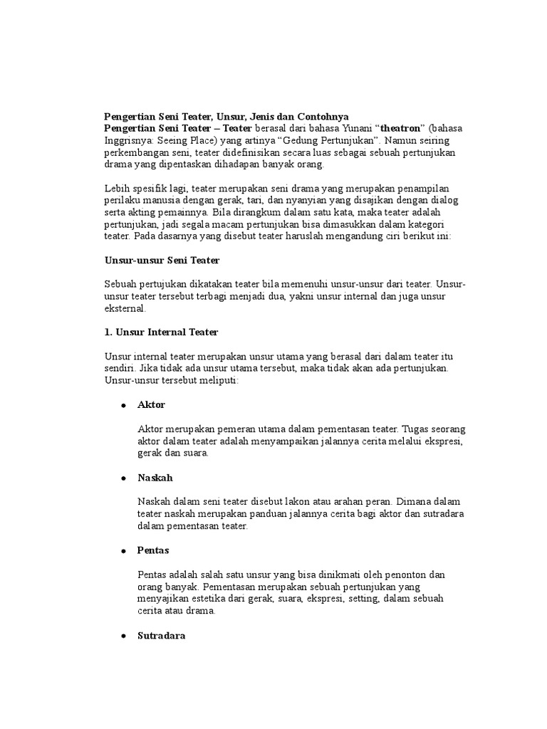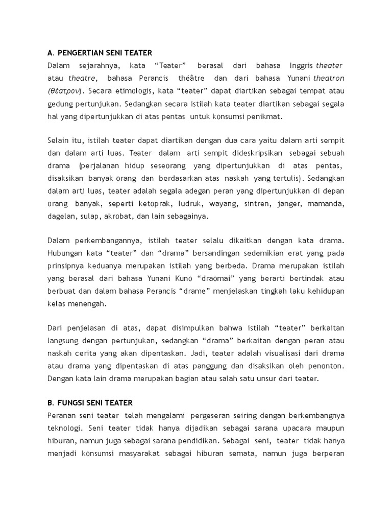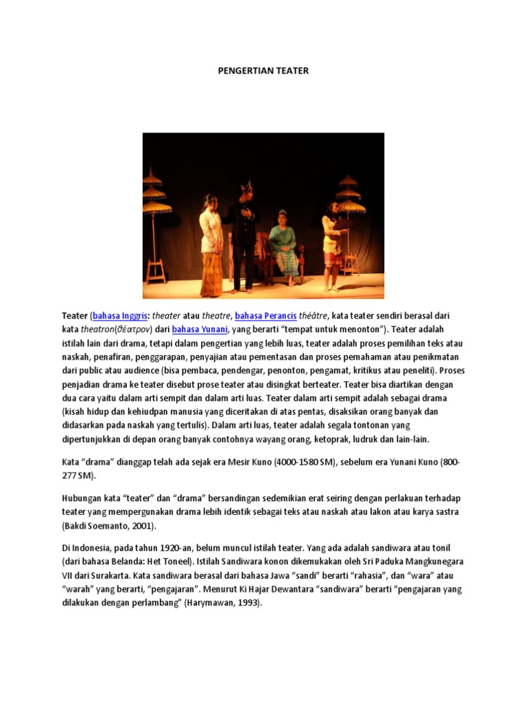 Pengertian Seni Teater Unsur Jenis Dan Contohnya Kliping