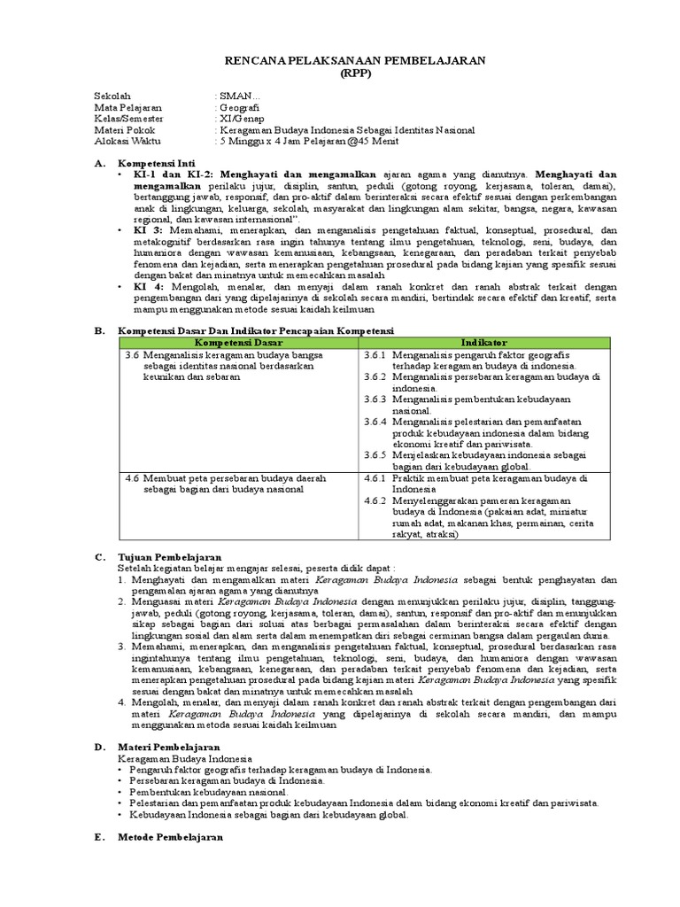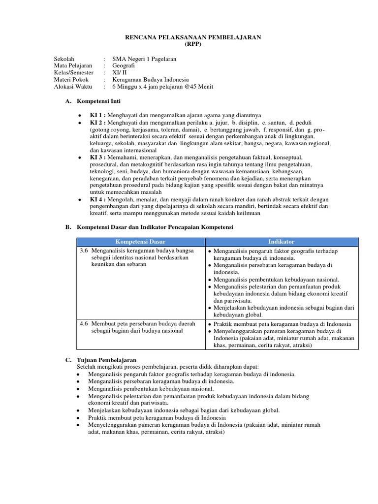 Silabus Geografi Versi 12022016 Rpp Kd 3 6 Budaya Nasional