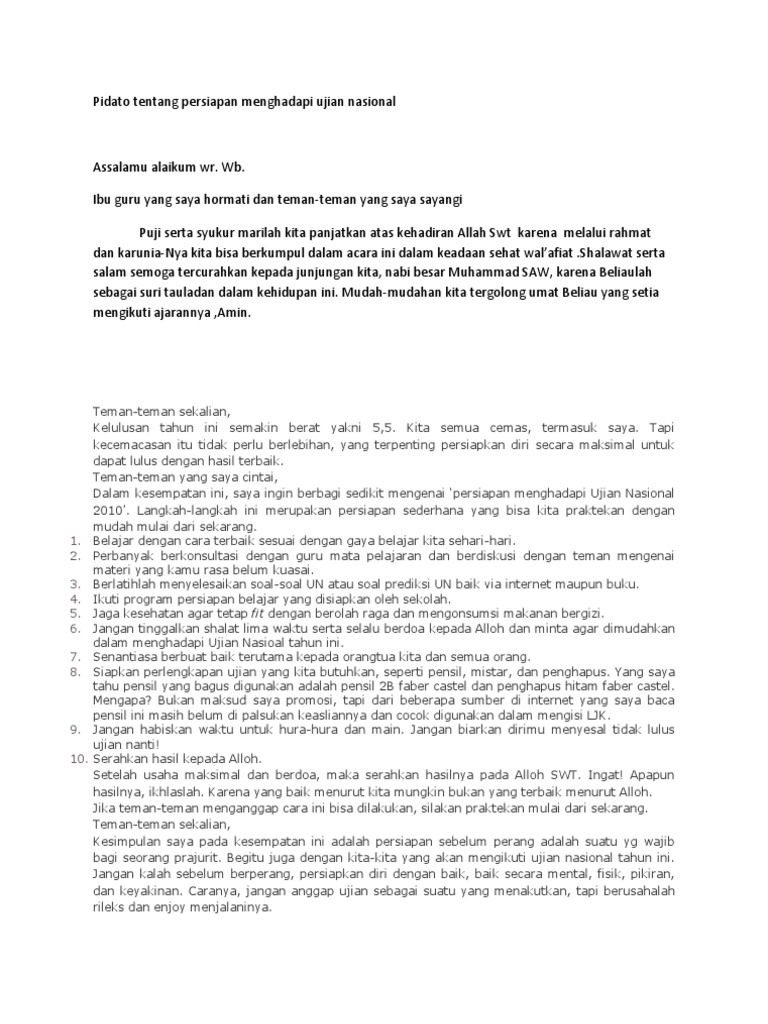 Contoh Pidato Menjelang Ujian Nasional Naskahpidato Com