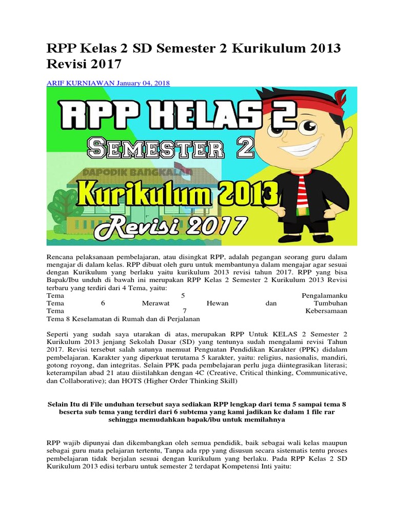 Rpp Kelas 2 Tema 5 6 7 8 Kurikulum 2013 Revisi 2017 Tentang