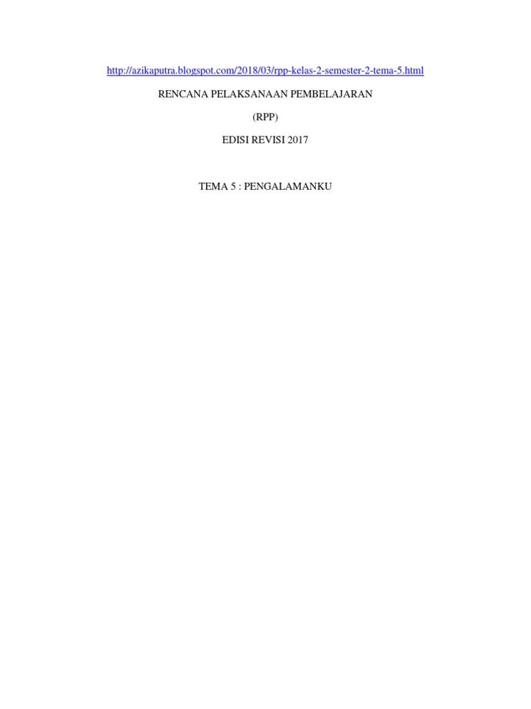 Rpp Kelas 2 Tema 5 Pengalamanku Semester 2 Revisi 2018