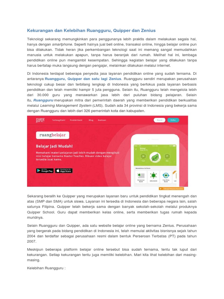 Kekurangan Dan Kelebihan Ruangguru Quipper Dan Zenius Informasi