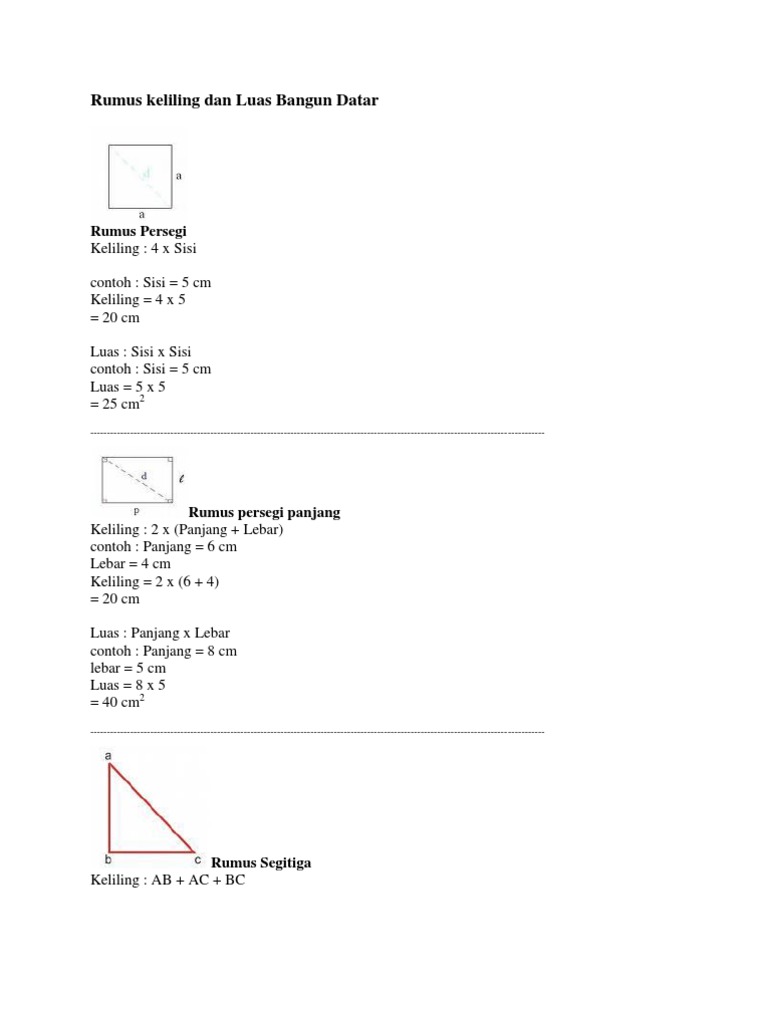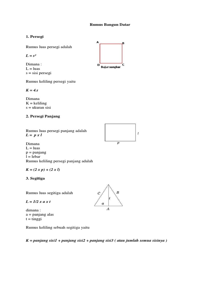 Rumus Luas Dan Keliling Bangun Datar Matematika