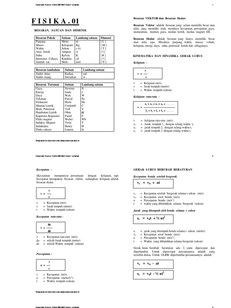 Kumpulan Rumus Fisika Sma Ma Super Lengkap Pdf