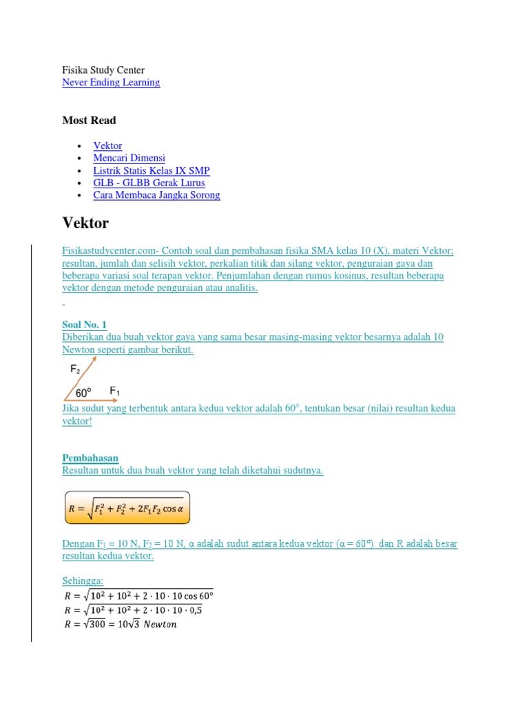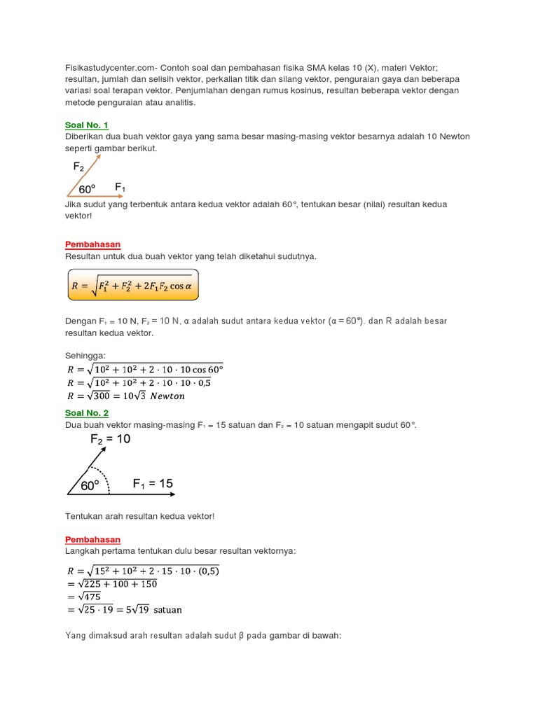 Contoh soal dan pembahasan fisika sma kelas 10 x materi vektor.