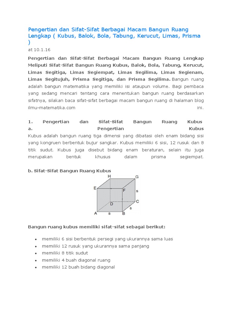 Rumus Volume Luas Permukaan Dan Sifat Bangun Ruang Berbagi Ilmu