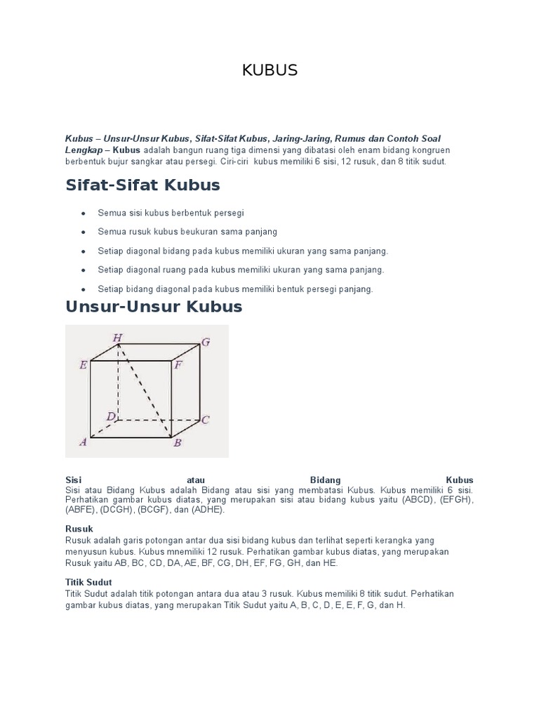 Unsur Unsur Kubus Beserta Penjelasannya Berpendidikan