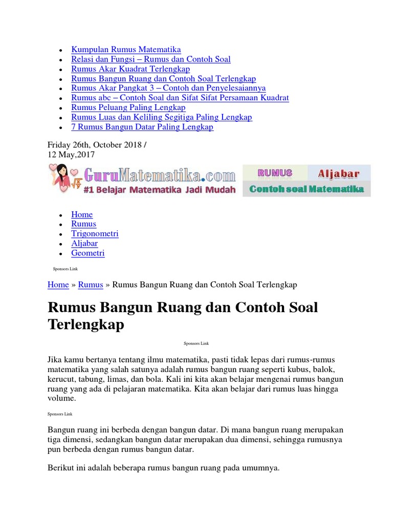Rumus Bangun Ruang Dan Contoh Soal Terlengkap Guru Matematika