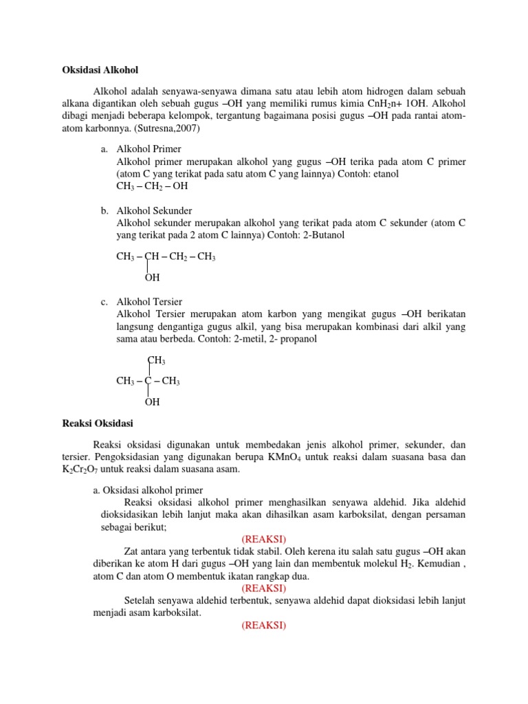 Reaksi Reaksi Alkohol Turunan Alkana Amaldoft