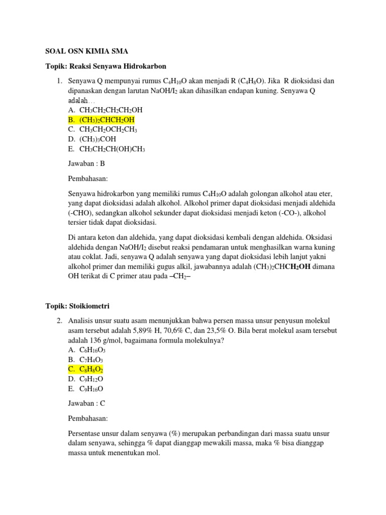 Bedah Kisi Kisi Un Kimia 2019 Bagian Kimia Organik Urip Dot Info