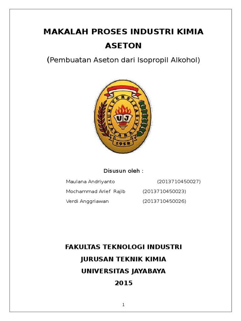 Makalah Proses Industri Kimia Aseton Pembuatan Aseton Dari