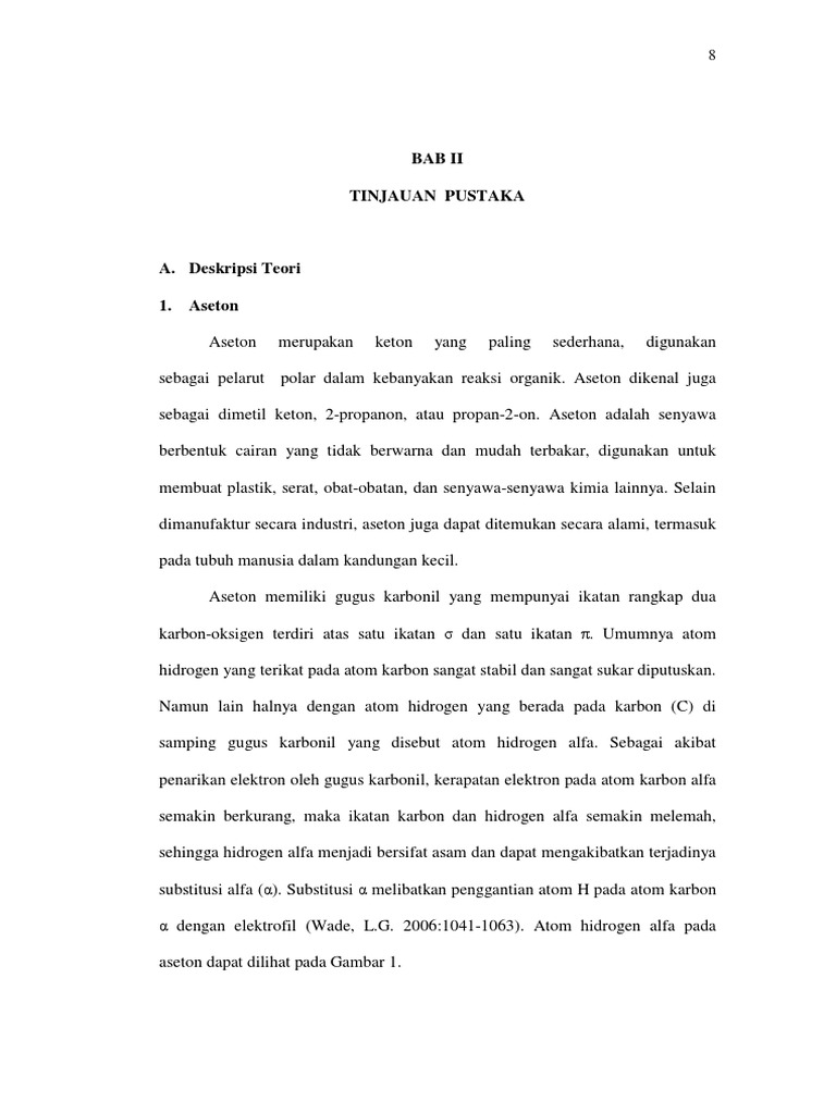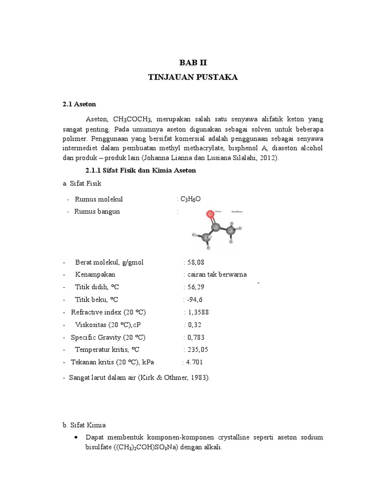 Bab Ii Kajian Pustaka A Deskripsi Teori 1 Aseton Aseton