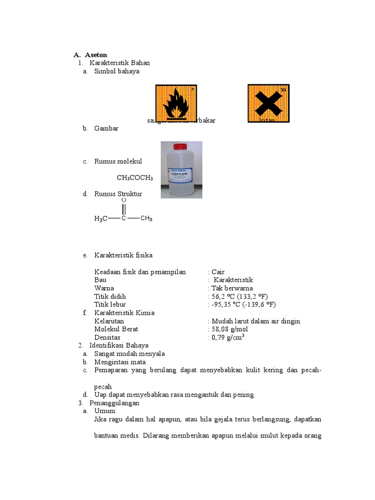 Bab Ii Tinjauan Pustaka A Deskripsi Teori 1 Aseton Aseton