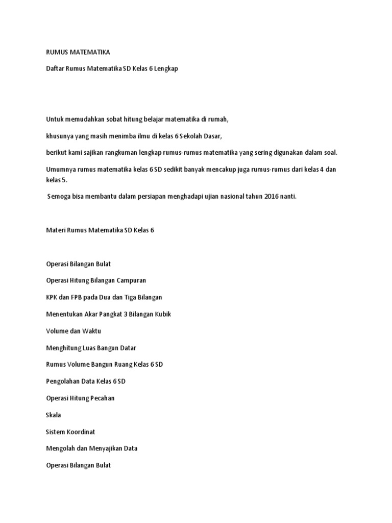 Rumus Matematika Kelas 6 Belajar Matematika Online