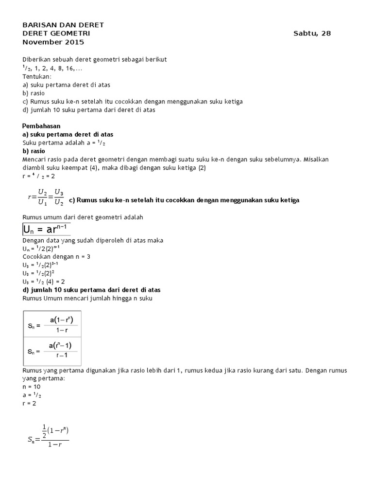 Rumus Barisan Geometri Dan Deret Geometri Matematika