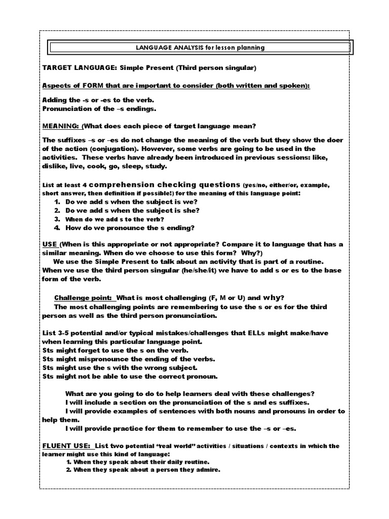 A Studied Plan In English Subject Subject The Simple Present Tense