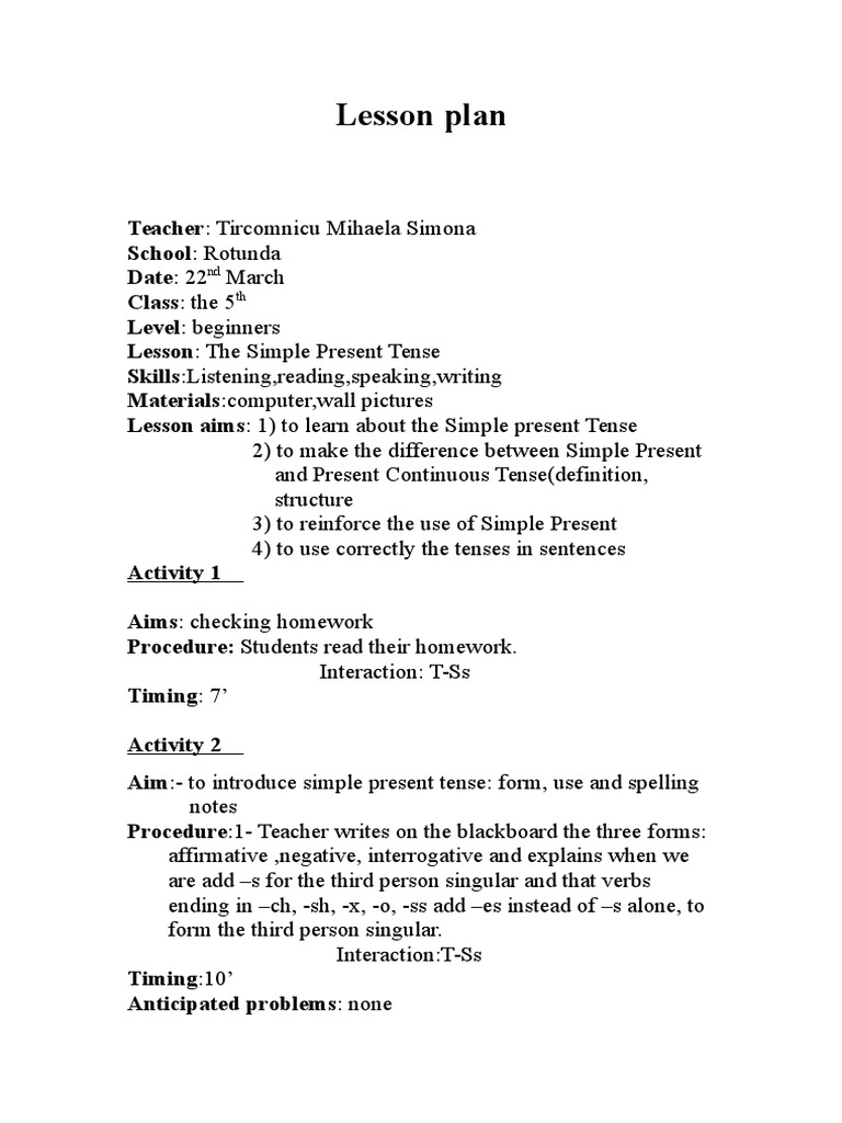 Simple Present Tense Lesson Plan Munawarunnisa Nazneen