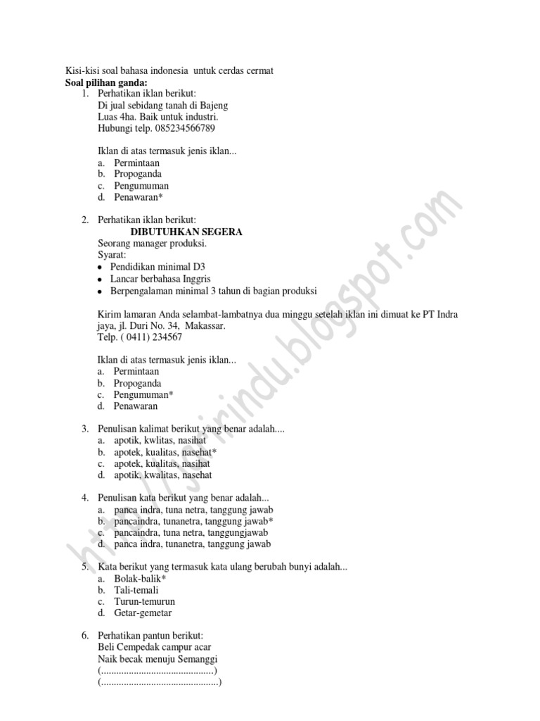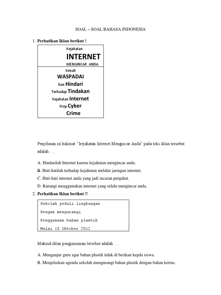Latihan Soal Bahasa Indonesia Kalimat Iklan Yang Sesuai Dengan