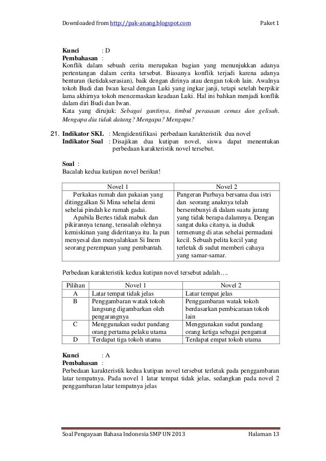 Model Soal Dan Pembahasan Bahasa Indonesia Smp Paket 3 1 Paket 3