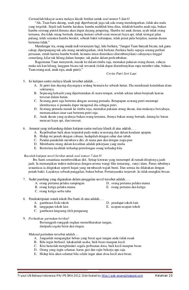 Soal Prediksi Dan Tryout Un Bahasa Indonesia Sma Program Ipa Ips