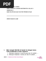 Soal Uh Matematika Kelas 4 Semester 1 Bab Kelipatan Dan Faktor
