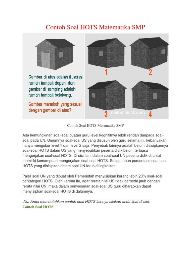 Contoh Soal Matematika Higher Order Thinking Skills Hots Matematrick