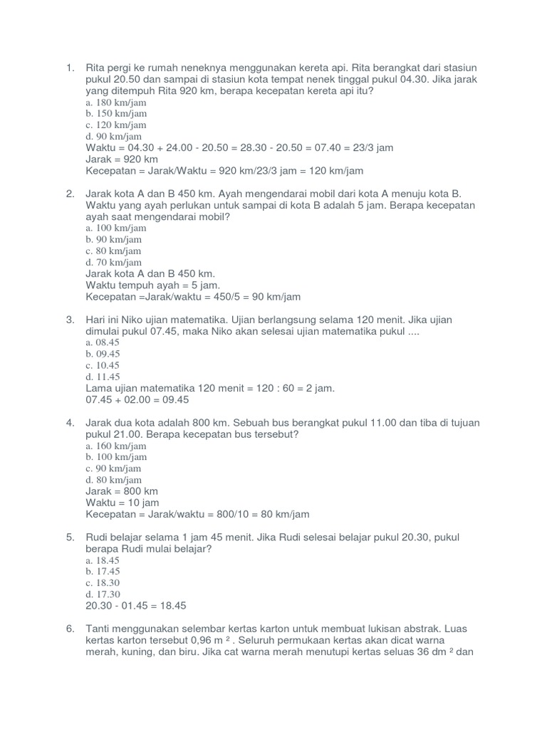 Soal Jarak Waktu Dan Kecepatan Kelas 5 Sd Kumpulan Koleksi Pilihan