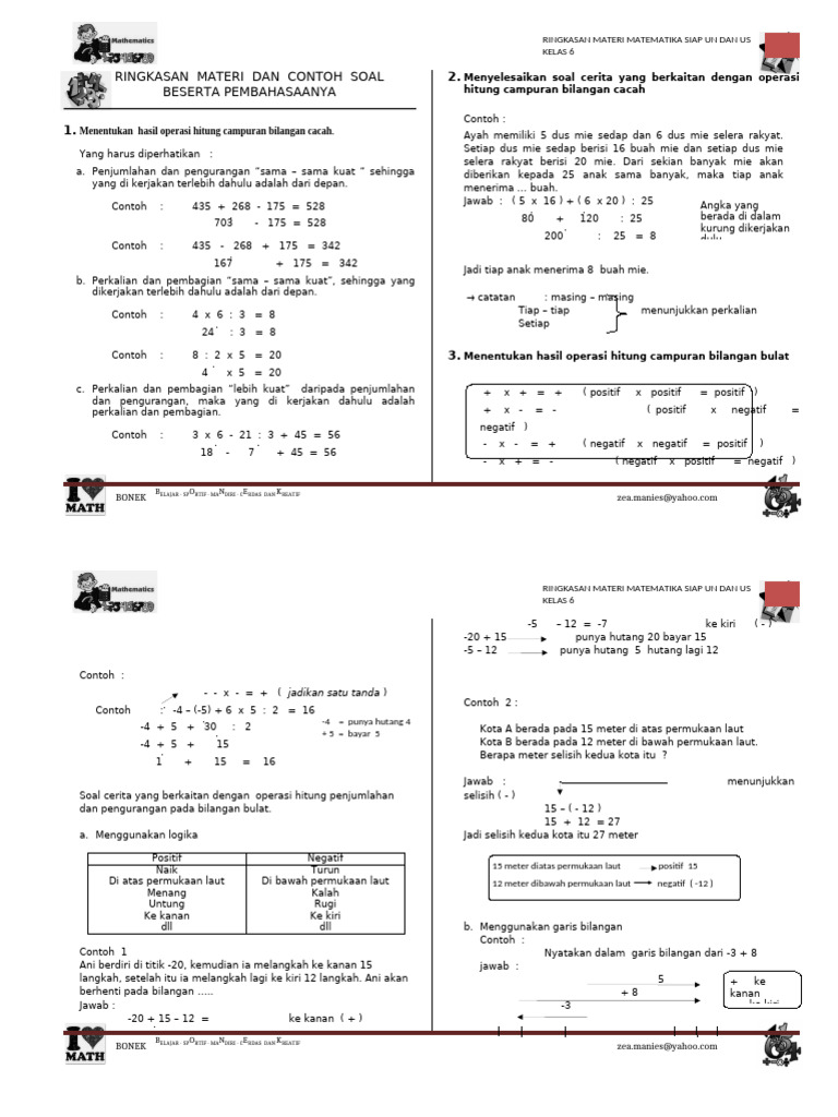Rangkuman Matematika Persiapan Uas