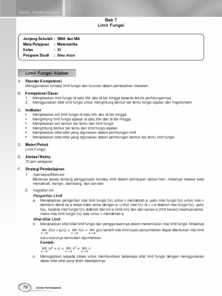 Model Pembelaj Limit Dan Turunan Sma Xi Ia