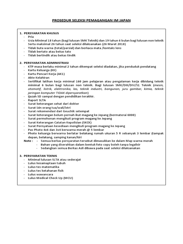 Prosedur Seleksi Program Pemagangan Im Jepang Disnaker Kota Makassar