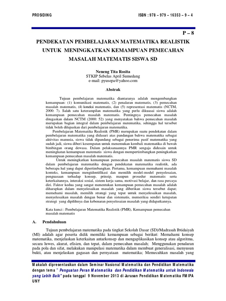 Pembelajaran Matematika Realistik Sebagai Suatu Pendekatan Pdf