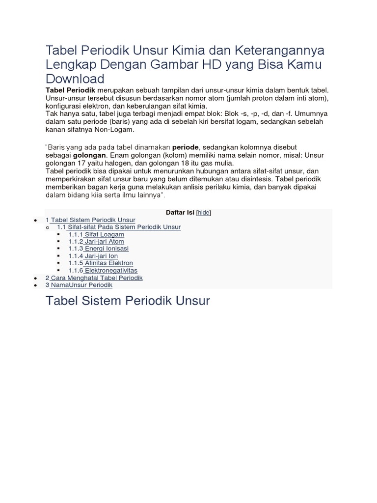 Sistem Periodik Unsur Kimia Makalah Tabel Sifat Dan Gambar Hd