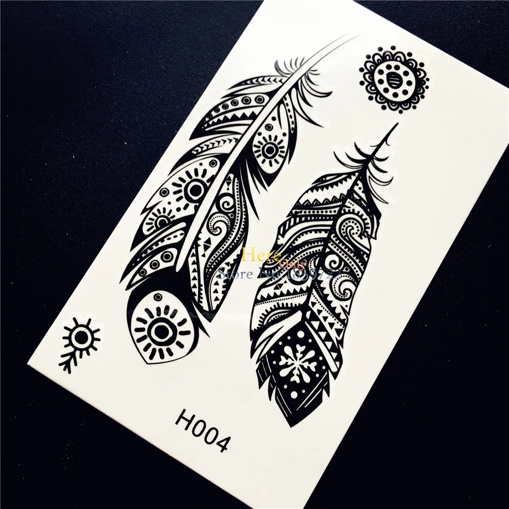 Hitam Suku Indian Feather Totem Stiker Tato Sementara Untuk Pria