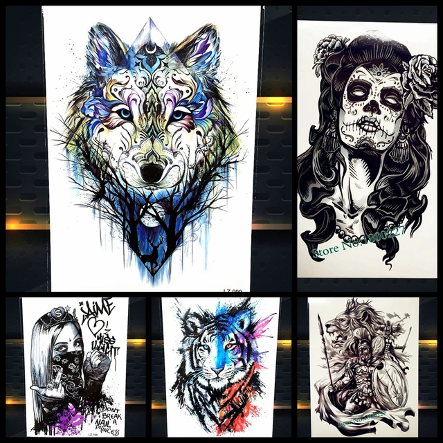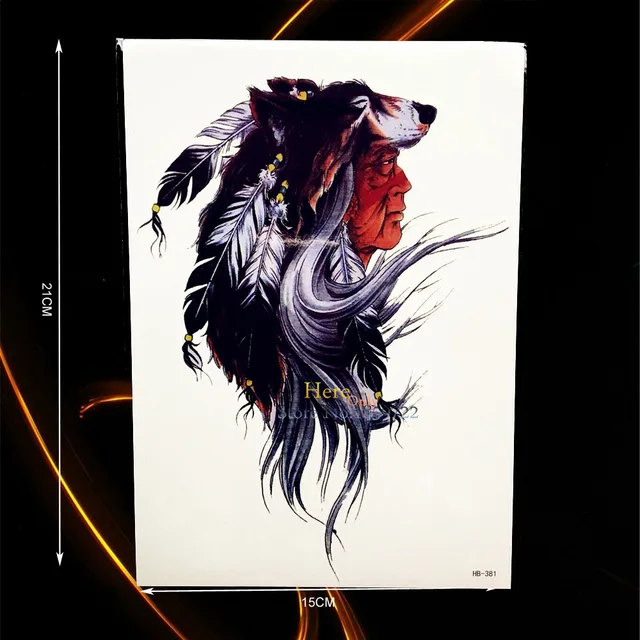 1 Pc Besar Lengan Lengan Tato Serigala Kepala Suku Cacique Desain