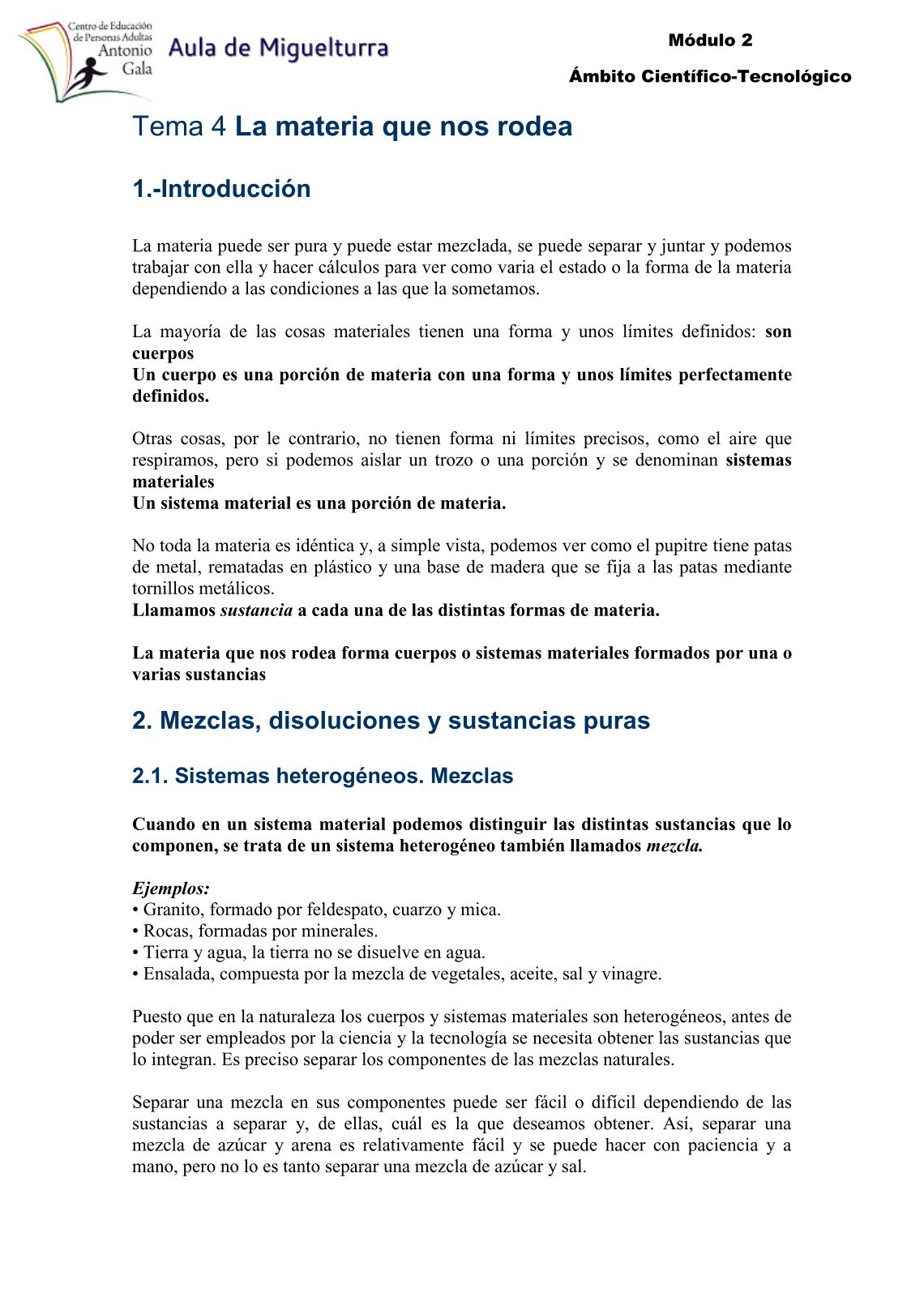 Tema 4 La Materia Y Los Materiales Colegio Cristo Crucificado