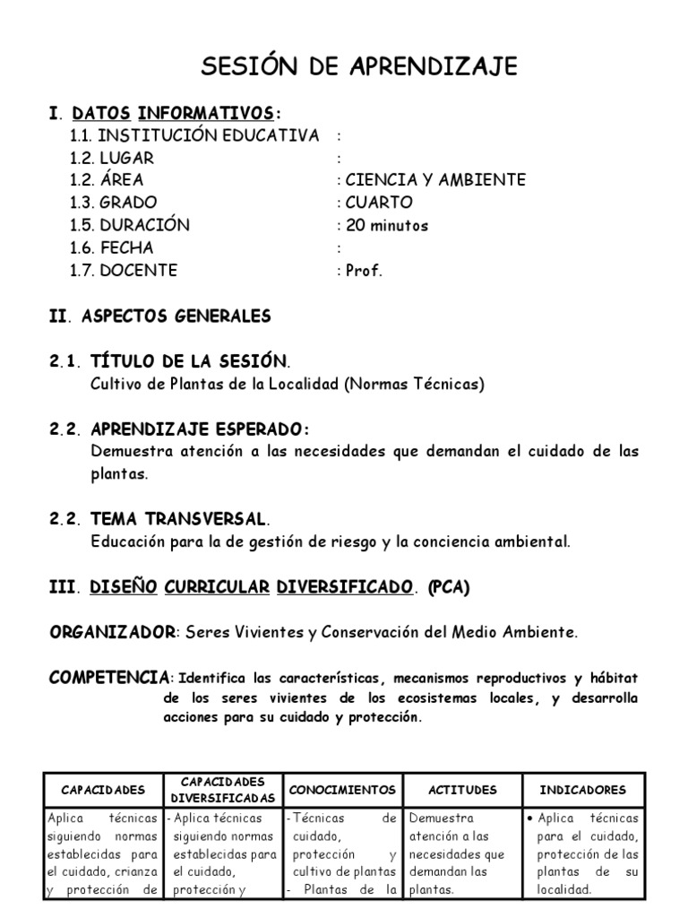 Sesion De Aprendizaje Primaria Cultivo De Plantas