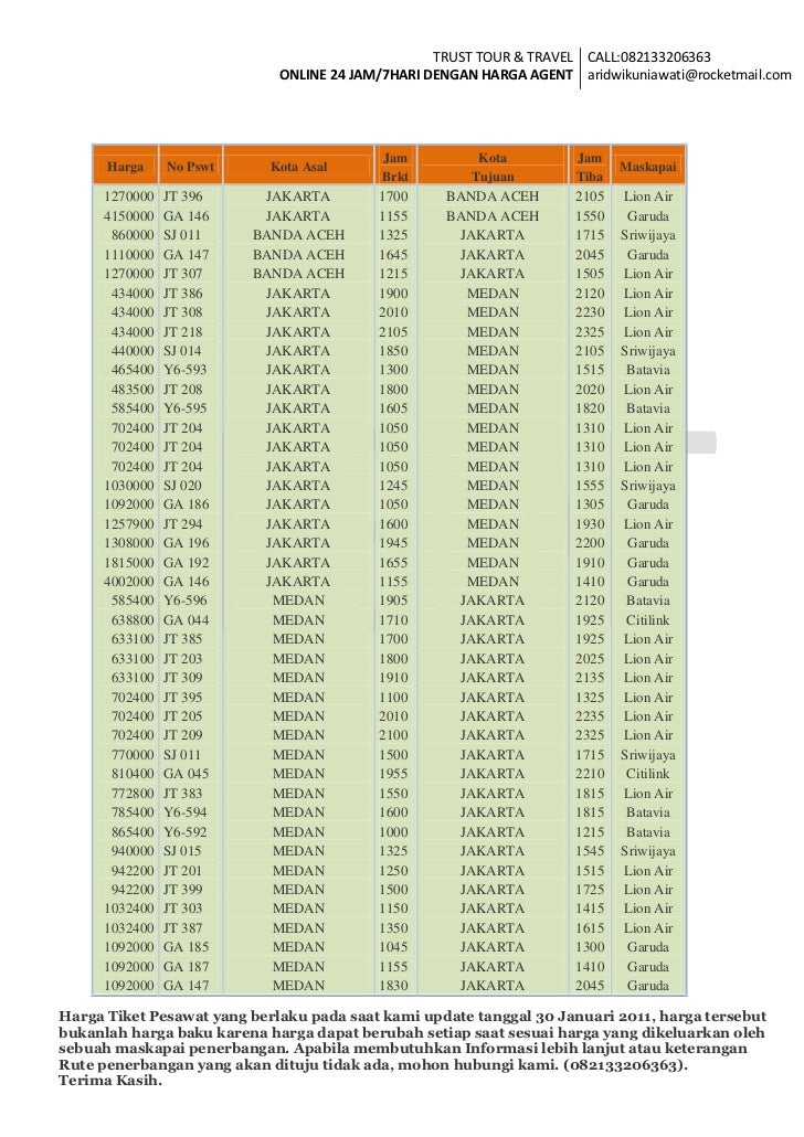 Harga Tiket Penerbangan Periode Bulan Februari 2012