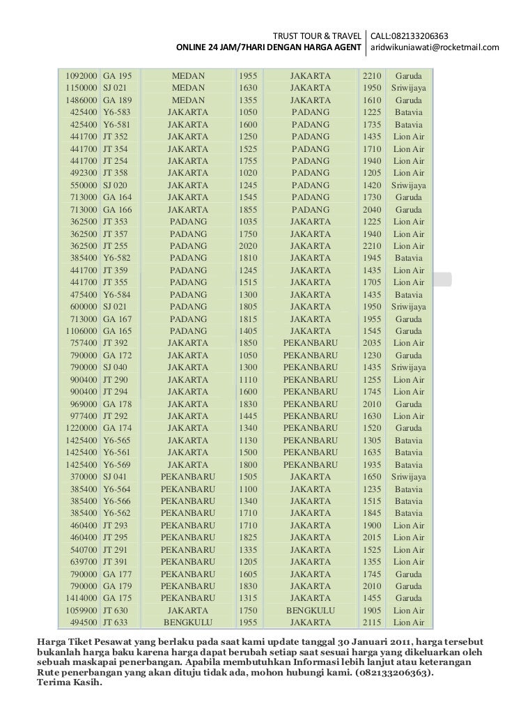 Harga Tiket Pesawat Tujuan Seluruh Indonesia Price List Daftar