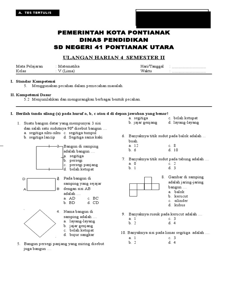 Soal Ulangan Harian Matematika Kelas 5 Ss Semester 1 Stepsneptun