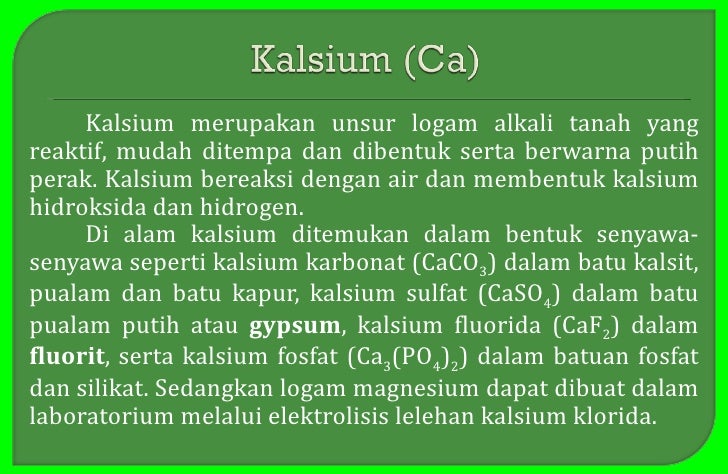 Kalsium Adalah Unsur Kimia Dalam Jadual Berkala Yang Bersimbolk